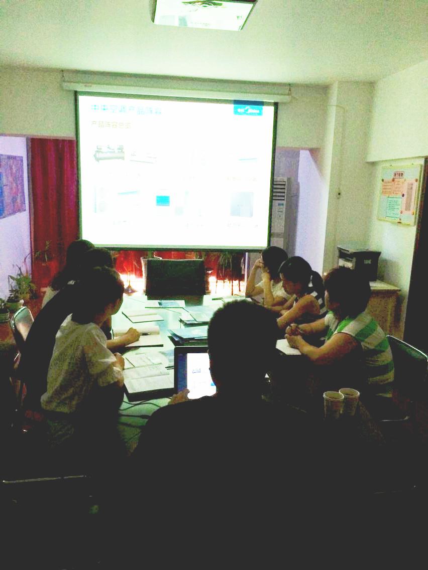 2014年6月17日公司邀请了美的空调公司三位有经验的专员来我司进行现场讲授,参加培训的有技术设计部、市场营销部和物资采购部的员工,培训专员着重给我们讲述了他们公司主要产品:高效降膜式螺杆冷水机组、风冷螺杆式冷(热)水机组、满液式螺杆冷水机组等设备的主要技术特点和在同行业中的优势。让我们很清晰和深入的了解了美的暖通这些年所取得的成绩以及为暖通行业所做的贡献。让我们认识到了我们国家的暖通发展速度之快,知名度在国际知名品牌中也占有一席之地。