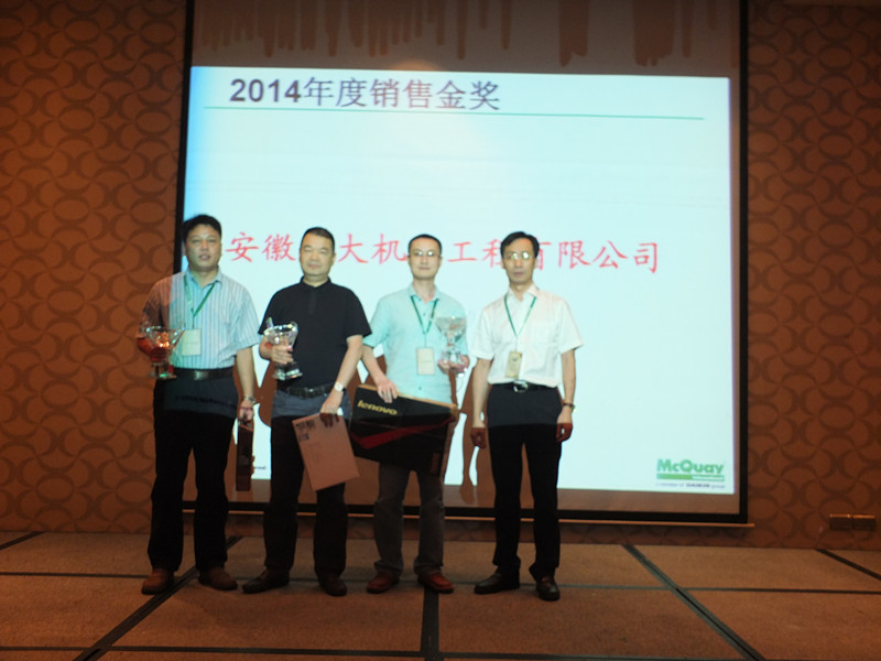 2014年8月1日,麦克维尔中央空调合肥分公司2014年度销售颁奖仪式及2014年度新产品推广会在合肥皇冠假日酒店隆重举行。我公司作为麦克维尔中央空调的经销商参与了此次会议。