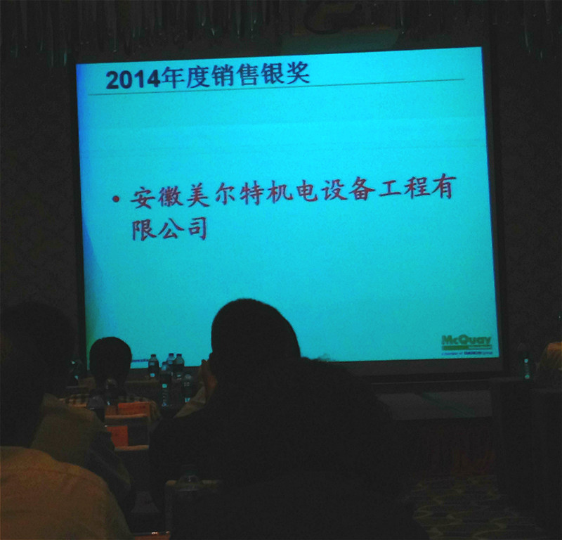 下午5时,麦克维尔2014年年度销售奖项的颁奖仪式正式开始。仪式上,由麦克维尔区总杨安桥先生宣布获奖名单,并为获奖的企业进行颁奖。我公司2014年在全体员工的共同努力之下,荣获“麦克维尔2014年度安徽区域销售银奖”。颁奖时,杨总高度赞扬了BB贝博艾弗森官方网站人的奋力拼搏的精神,并鼓励我公司在新的一年里取的更好的成绩。