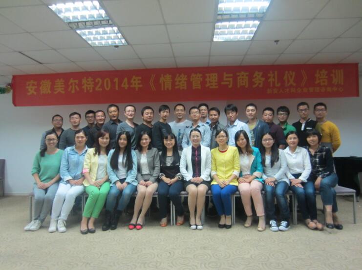 在现代社会,情绪管理及商务礼仪不仅仅关系到我们的个人形象,更是一门非常有用的学问,也是一门高深的文化。为进一步提高公司员工在工作中拥有良好的工作形象,提高工作效率及质量,加强责任心,提升团队工作效率,公司定于2014年10月11日,聘请了专业的培训机构在合肥如家酒店会议室为全体员工安排了《情绪管理与商务礼仪》培训课程。