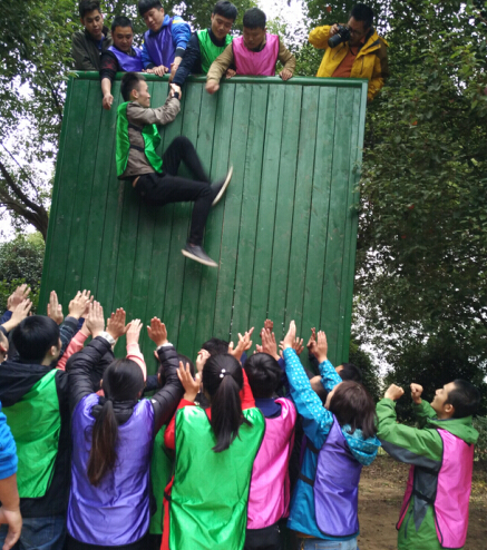 上午8点30分,大家怀着激动的心情到达训练基地。全程拓展训练项目有破冰团建、群龙取水、急速60秒、驿站传书和毕业墙。首先由教练带领大家做热身运动,全体员工被分成3个队,分别由各组队员们民主选举出队长、副队长、旗手等,大家积极主动完成任务,整个场面立即呈现出良好的团队氛围。