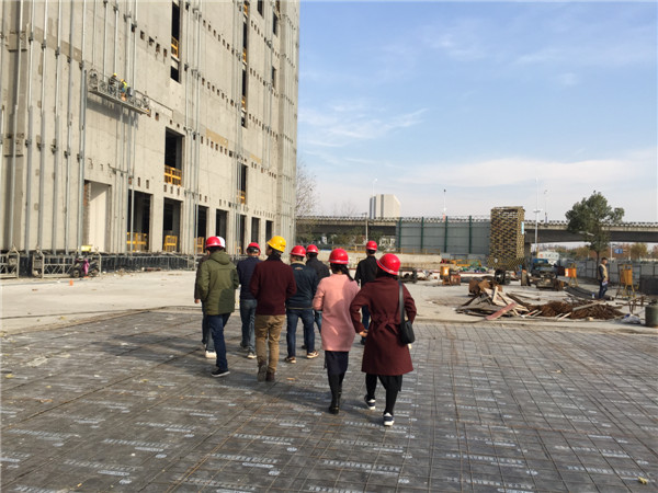 下午1点40分,我们到达项目现场,开启了工地学习之旅。项目负责人卜得龙担任此次参观学习的“实习老师”,他首先提醒大家戴好安全帽及注意现场的安全事项,随后带领大家进入施工现场。