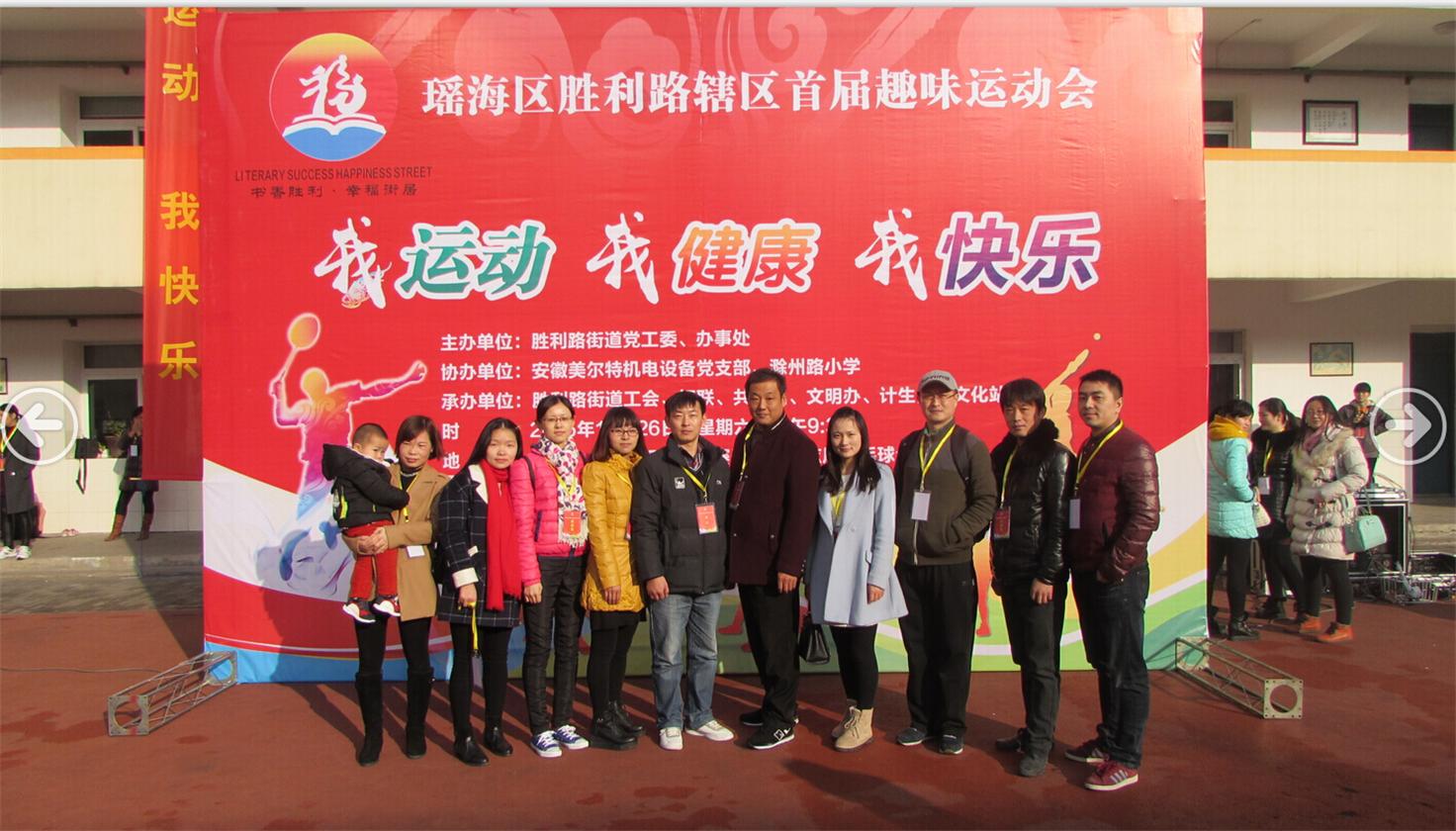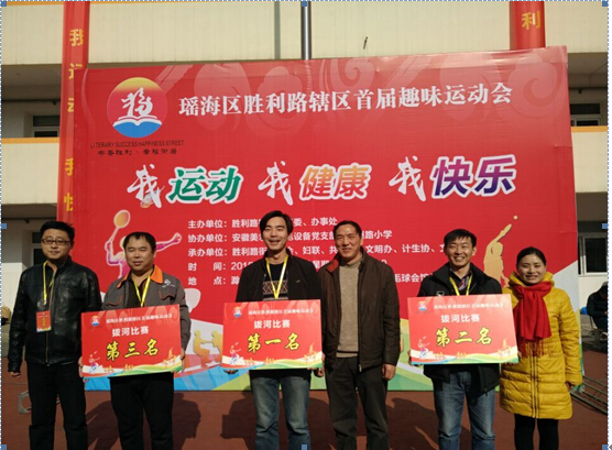 2015年12月26日由合肥市瑶海区胜利路街道党工委举办的,2016“庆元旦、迎新春”趣味运动会在滁州路小学拉开帷幕,此次运动会以“我运动、我健康、我快乐”为主题,共设置了拔河、羽毛球、带球接力、步调一致、心有灵犀等趣味项目。
