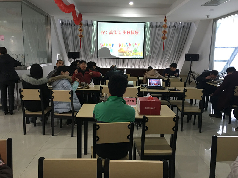2017年3月20日公司迎来了本年度第一位过生日的小伙伴(售后服务部员工高佳佳)。中午12点,在员工餐厅由企管部组织举办了简单的生日Party,随着现场优美欢快的音乐,公司总经理姚立新先生与寿星共同举杯,现场所有的同事共同唱响了生日快乐歌,并将满满的祝福和问候都送给我们的寿星,在此祝愿我们的寿星此时此刻甜美的笑脸永远绽放!