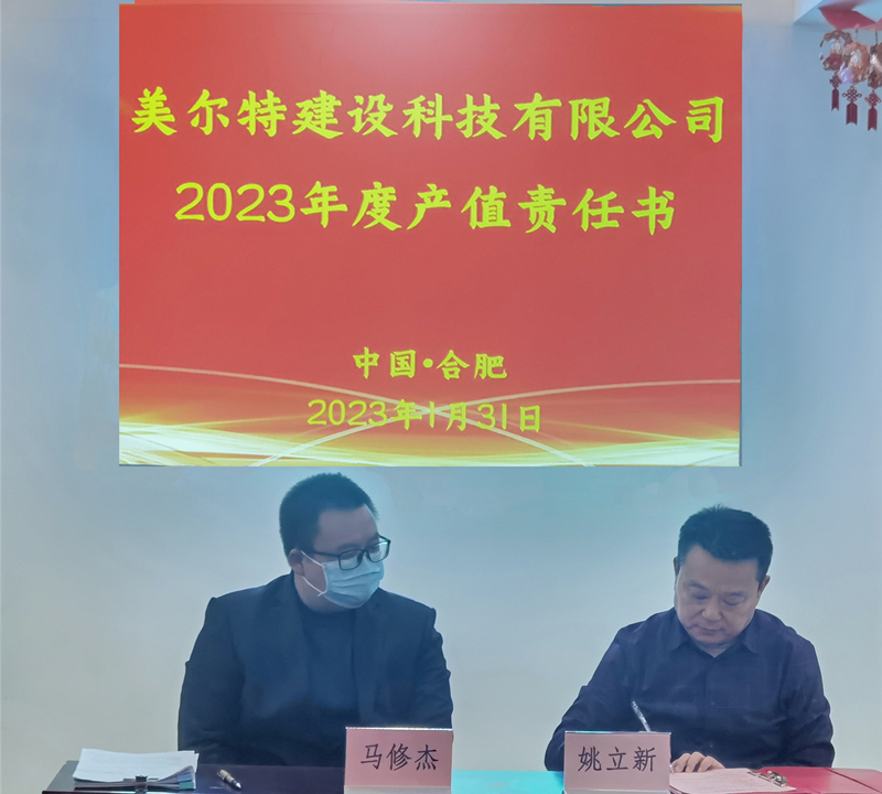 最后,为了明确目标任务,总经理助理与公司签订了《2023年度产值责任书》。责任书的签订,是一份庄重的承诺,是前进的动力与方向,希望在今后的工作中,不忘初心、砥砺前行,为完成产值目标努力奋斗。