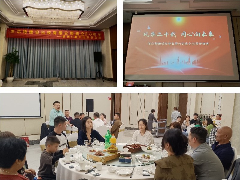 4月28日18:30,BB贝博艾弗森官方网站建设科技有限公司20周年庆晚宴在湖州市凤栖酒店举行。全体员工及家人在此欢聚一堂,共同见证并参与了这一重要时刻。晚宴伊始,总经理对员工家属的到来表示了热烈的欢迎和衷心的感谢,随后深情而又淳朴的回顾了二十年的创业历程,二十年奋斗、二十年追求,二十年风雨、二十年征途,在这春秋更替的二十年里,我们始终秉承以市场为导向、以客户为中心的服务理念,努力不懈地为广大客户提供专心、专业、专注的绿色服务。