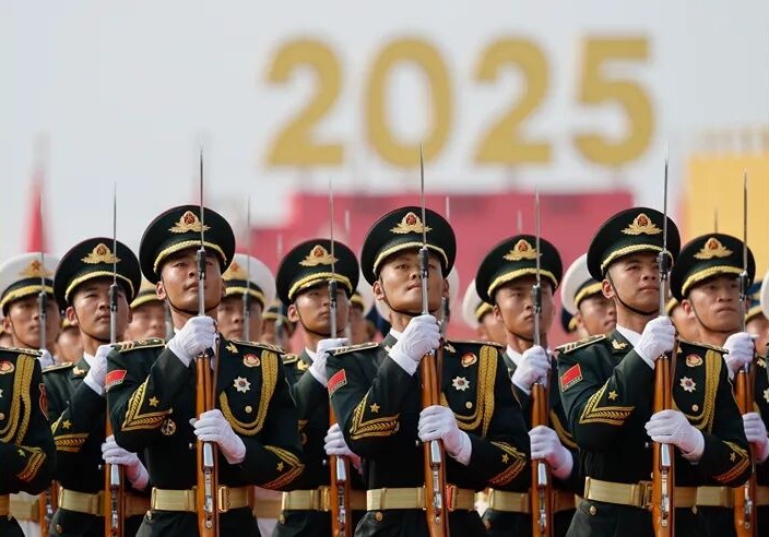 当激昂的《义勇军进行曲》奏响,鲜艳的五星红旗冉冉升起,我们的心中涌起一股难以抑制的澎湃之情。阅兵仪式上,一列列整齐划一的方队迈着铿锵有力的步伐走过天安门广场,他们身姿挺拔、神情坚毅,展现出中国军人的卓越风采和顽强斗志。那整齐的队列、震天的口号,仿佛是在向世界宣告:中国,正以强大的姿态屹立于东方。