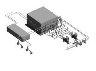 以某地办公楼为实例进行模型搭建,该建筑地上5层地下1层,其总建筑面积为5450㎡,地上面积4583㎡,空调面积3815㎡,主要以办公为主。本工程机电系统包括了送排风、冷热水(地板射)、冷却水、生活用水、消防喷淋及通风、照明等多个系统管线。主要以送排风、冷热水(地板辐射)的暖通工程进行全面细致的模型搭建并进行相应的深化设计。建筑运营是能源密集型的,并且约占世界最终能源消耗的三分之一。该办公楼空调系统与常系统有所不同,该系统充分利用调峰蓄能技术降低建筑能耗,蓄能技术的实质是利用峰谷期将机组产生多余的冷热量储存起来,在用冷用热的高峰期将其释放出来,以保证机组的稳定运行以及解决负荷的波动问题。该办公楼空调系统是冬夏季两个相对独立的系统,对两个冬夏季系统如图1、2所示,详细介绍如下: