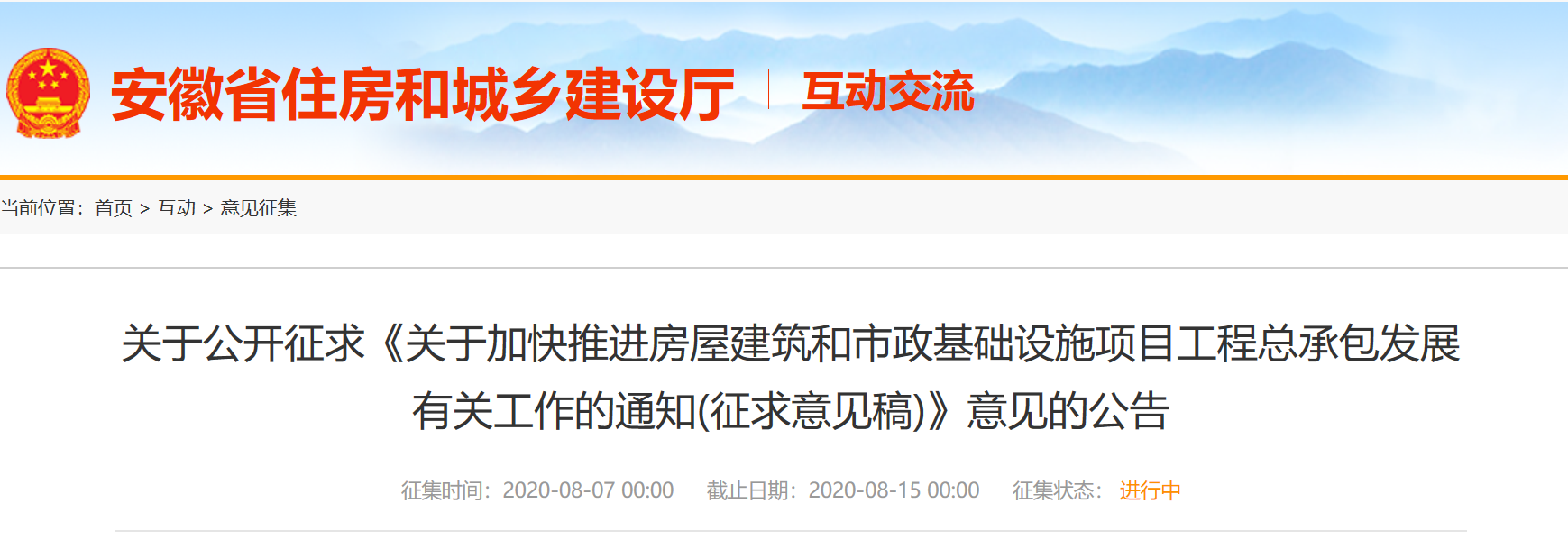 近日安徽省住建厅发布《关于加快推进房屋建筑和市政基础设施项目工程总承包发展有关工作的通知(征求意见稿)》: