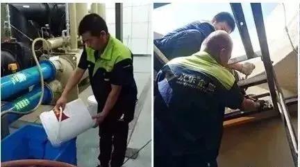 冬季机组不方便放水排空而又有可能断水断电的情况,设备采暖必须添加补防冻液,而且必须根据当地最低温度作为选择防冻液的重要参数。防冻液的主要成分是乙二醇, 防冻液从补水箱灌进去,把水系统的冷冻水排放以后,先注入防冻液原液,不够的再注入冷冻水,然后开启水泵使防冻液和水充分的融合,顺便把水系统的空气全部排出,水系统不能有空气,空气存在会使空调设备报水流开关保护,还容易形成汽蚀。