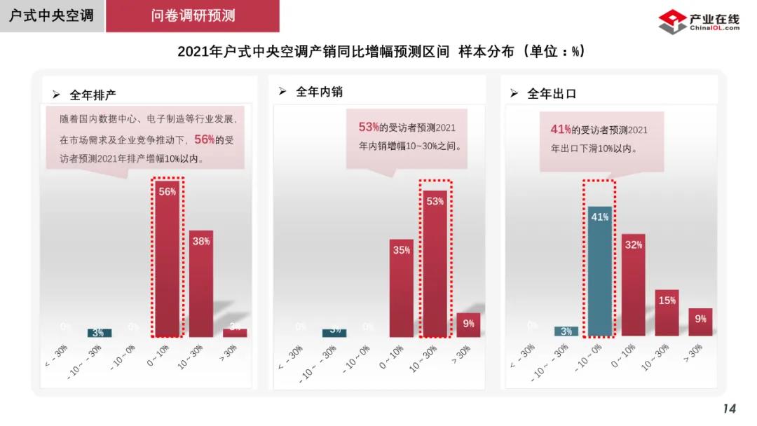 从空调产业链角度来看,对于家用空调,预测2021年内外销市场均现小幅增长。国内市场终端需求持续恢复,叠加地产竣工数据回暖、2020年基数低等因素,增长可期,出口也将持续向好。户式中央空调和大型冷水机组则会呈现内销向上、出口向下的形式。