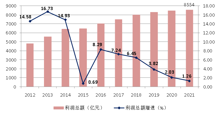 图7 2012–2021年全国建筑业企业利润总额及增速