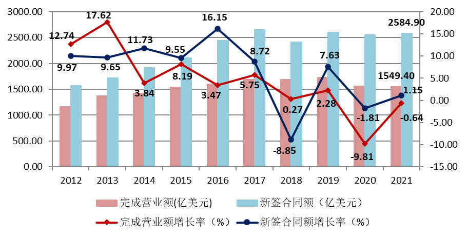 图13 2012–2021年我国对外承包工程业务情况