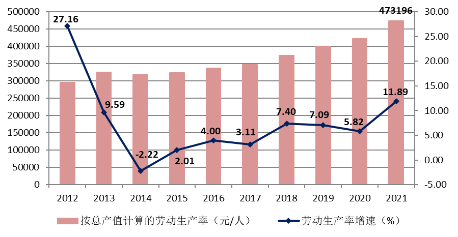 图6 2012–2021按建筑业总产值计算的建筑业劳动生产率及增速