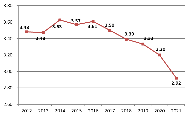 图8 2012–2021年建筑业产值利润率
