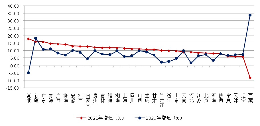 图15 2020–2021年各地区建筑业总产值增速