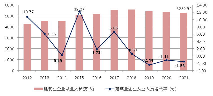 图4 2012–2021年建筑业从业人数增长情况