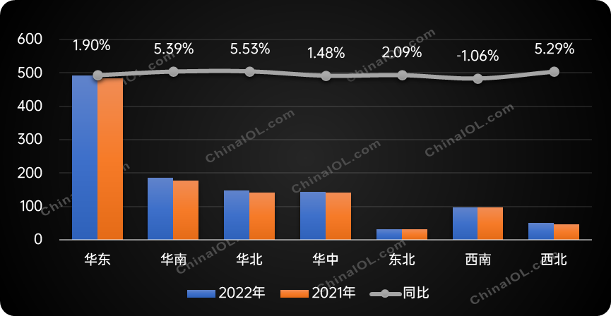受项目资源减少、零售市场遇冷等因素制约,华北、东北、西北等地区的份额增速明显放缓。在规划空间饱和、疫情多点散发的影响下,北京、天津等权重市场的规模表现不及预期;其余省市经济发展相对缓慢,受疫情影响较为明显,地区经济的活力下滑令家装零售市场的规模增长进一步遇阻,到手订单储备不足、大型项目增量减少等因素也进一步加剧了商业项目市场的萎缩局面。面对经济结构亟需优化、市场活力有待提振的区域特点,上述地区的市场发展仍需依靠宏观政策和消费投资的进一步提振。