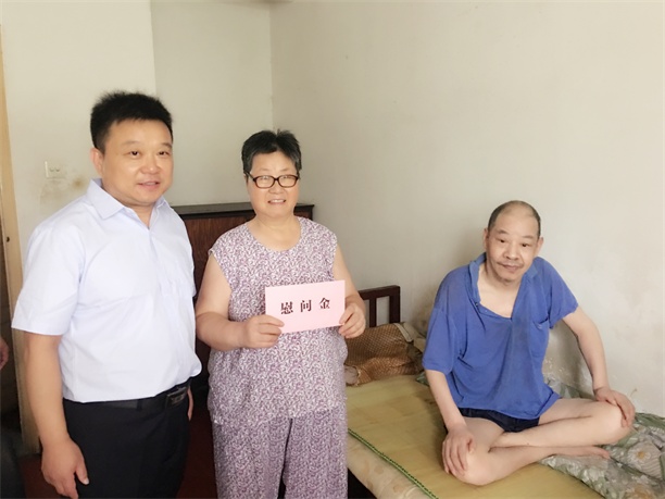 此次走基层慰问的两户家庭都十分困难。一户是多重一级残疾,生活不能自理,日常靠年迈的奶奶照顾生活。另一户是瘫痪失语,靠父母维持生活。我们在了解了他们的生活情况之后,深受触动,想为他们干一些力所能及的实事,减轻一些他们的生活压力和负担。下午3点,代表一行来到困难家庭中,给帮扶对象送上了慰问金,与他们进行交谈,了解他们的实际困难,鼓励他们要乐观地面对生活,要勇敢地克服人生道路上的种种磨难等。
