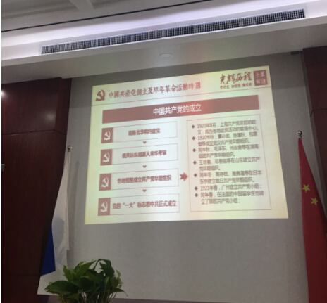会议开始,由支部书记解光法讲党史、上党课。书记为大家生动讲述了建党九十六周年以来的风风雨雨,回顾了中国共产党成立的第一次全国代表大会、第一次国共合作、红军长征等历史事件,充分展现了中国共产党在经历了革命、建设、改革的长期考验下,仍能团结带领全国人民创造了伟大的奇迹。一个个感人的党史故事,让与会人员经历了一场红色的洗礼,也重温了我党波澜壮阔的革命史。