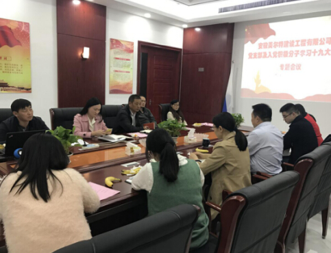 2017年11月10日15:00,我司党支部组织召开专题会议,集中学习党的十九大报告,深刻领会党的十九大精神。支部全体党员、入党积极分子及各部门负责人共同参加了会议。