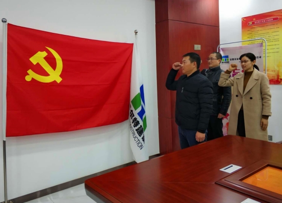 会议最后,由支部书记解光法同志带领两位新党员在党旗前宣誓,并作总结发言:祝贺赵伟和王春燕同志加入党组织,期望两位同志以此为契机,进一步加强学习,努力工作,充分发挥一名中国共产党员的模范带头作用,为构建和谐社会做出自己应有的贡献。